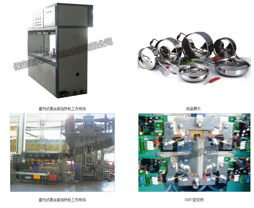 主要用于復(fù)合底鍋壓焊前的預(yù)熱,與摩擦壓力機(jī)配合,可實(shí)現(xiàn)復(fù)合金屬煲底壓焊工藝,俗稱“打底”。加熱機(jī)電源和機(jī)床均由微機(jī)控制,是由多套微機(jī)控制的電氣、機(jī)械、氣動(dòng)一體化技術(shù)設(shè)備。